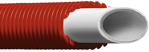 KELOX meerlagenbuis conform ÖNORM EN ISO 21003; zuurstof- en waterdampdichte 5-lagenbuis van PE-RT/Al/PE-RT; 4 mm zachtschuim isolatie in de fabriek aangebracht; 4 mm zachtschuim isolatiebeschermhuls van viscoplastisch PE-HD